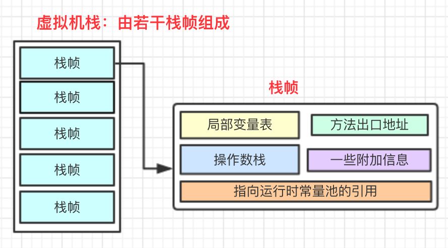 虚拟机栈是Java方法执行的内存模型,栈中存放着栈帧,每个栈帧分别对应一个被调用的方法,方法的调用过程对应栈帧在虚拟机中入栈到出栈的过程。