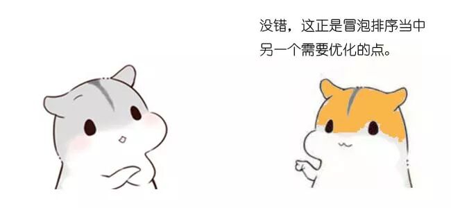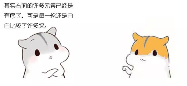 实际上,数列真正的有序区可能会大于这个长度,比如例子中仅仅第二轮,后面5个元素实际都已经属于有序区。因此后面的许多次元素比较是没有意义的。