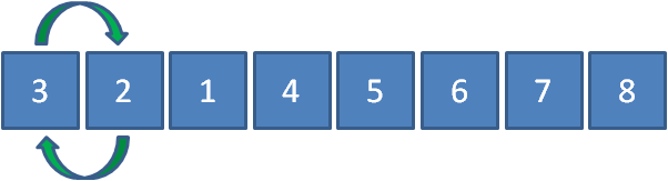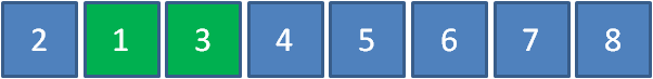 接下来让8和2比较,发现8比2要大,所以8和2交换位置。