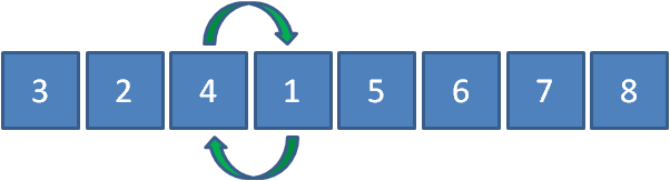 接下来让8和1比较,发现8比1要大,所以8和1交换位置。