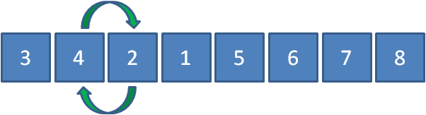 继续让8和7比较,发现8比7要大,所以8和7交换位置。