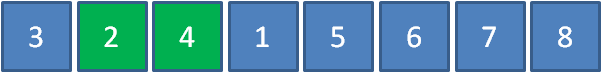这个数列的特点是前半部分(3,4,2,1)无序,后半部分(5,6,7,8)升序,并且后半部分的元素已经是数列最大值。