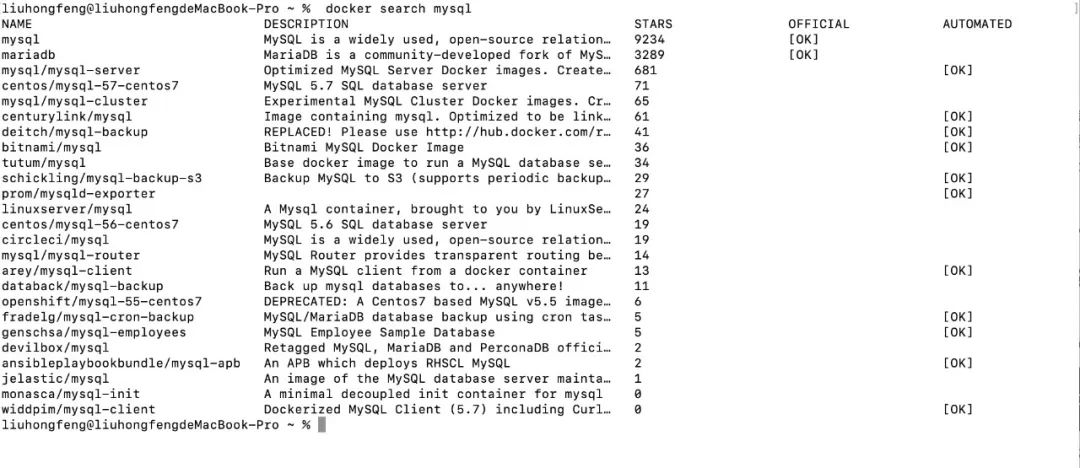 docker search mysql