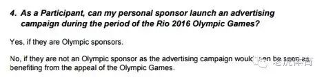 此前,非官方赞助商在奥运期间曾利用签约运动员做埋伏营销,与奥运会品牌绑定,IOC对于这样的行为并没有严加控制。但此次Rule40政策的紧缩,让非奥运官方赞助商的奥运权益降到历史低点。