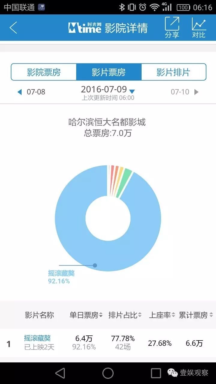 图10:7月9日哈尔滨恒大名都影城票房占比分布(时光网专业版app)