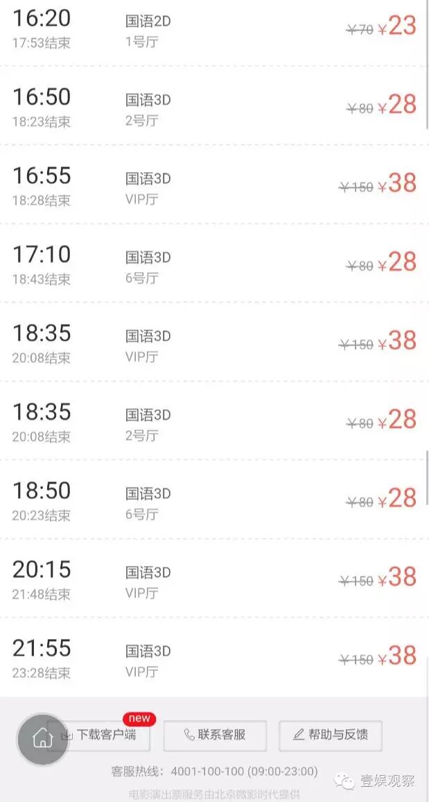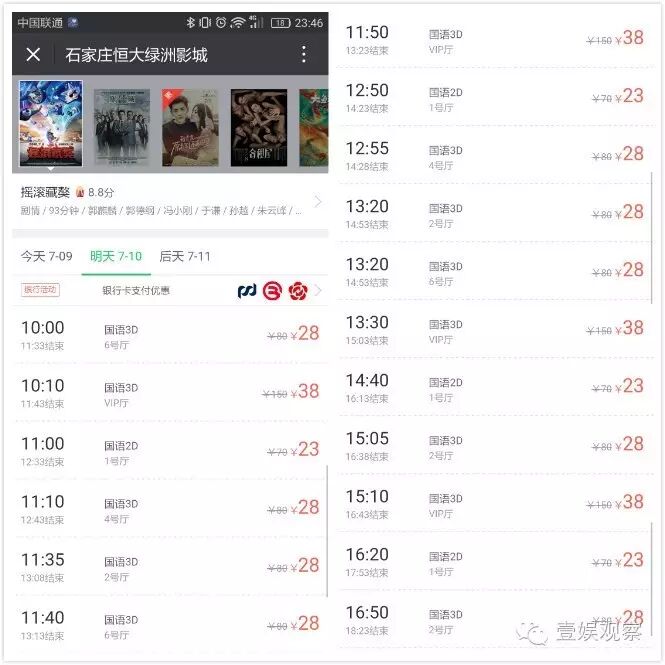 壹娱观察从9.9元促销的几家北京影院里选了两家影院,分别是鲁信影城北京立水桥店和嘉华国际影院(姚家园店)。