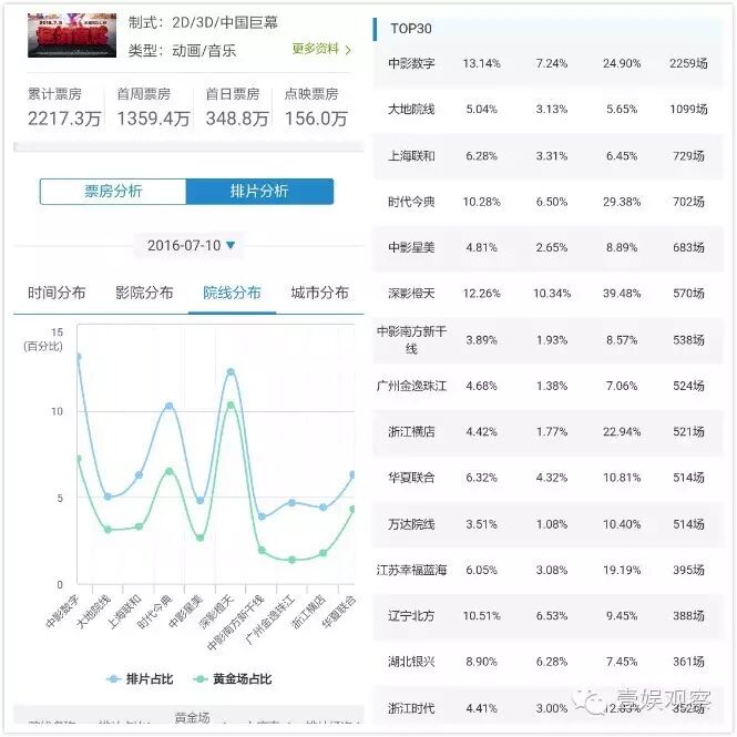 图2:7月10日《摇滚藏獒》院线排片分析(时光网专业版app)
