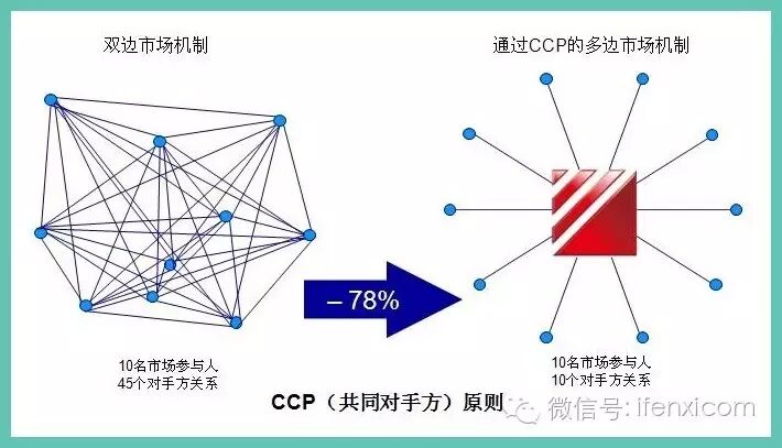 至于为什么要采用共同对手方:以下图为例:市场有10名参与人,他们相互之间有45个对手方关系;如果由中国结算充当共同对手方,则只需要10个对手方关系,对手方关系减少78%。