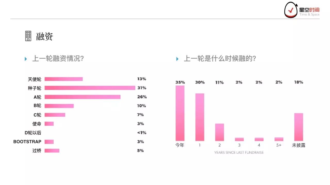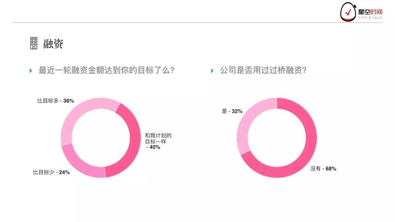 融资面临挑战,还是要保持信心。31%的公司完成种子轮,35%的公司在今年完成上一轮融资。20%的公司在最近一轮融资中接触了11-20家机构。68%的公司表示没有用过过桥融资。