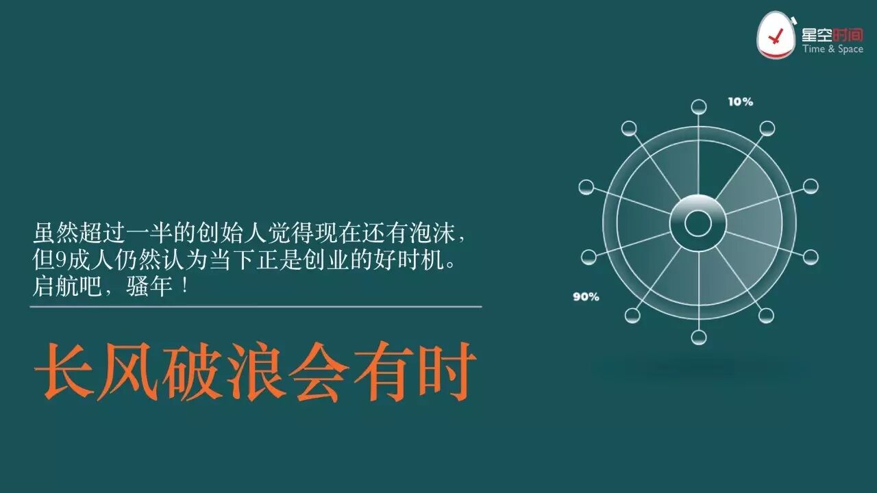 骚年们,抓住创业好时机。91%的调查对象认为现在是创业的好时机,43%认为现在“绝对”没有创业泡沫,33%认为有创业泡沫,但是没有那么快爆。