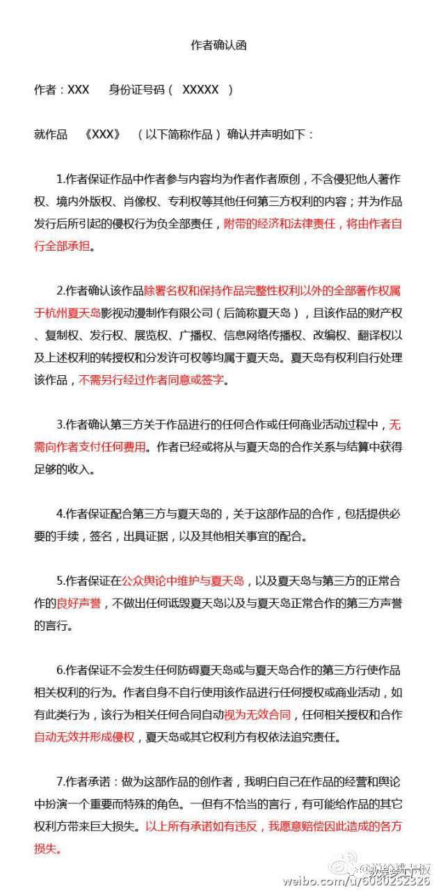 在外部环境剧烈变换的当下,夏天岛还拿出纸媒时代的作者合约+全版权协议,也就难怪漫画家选择解约出走了。