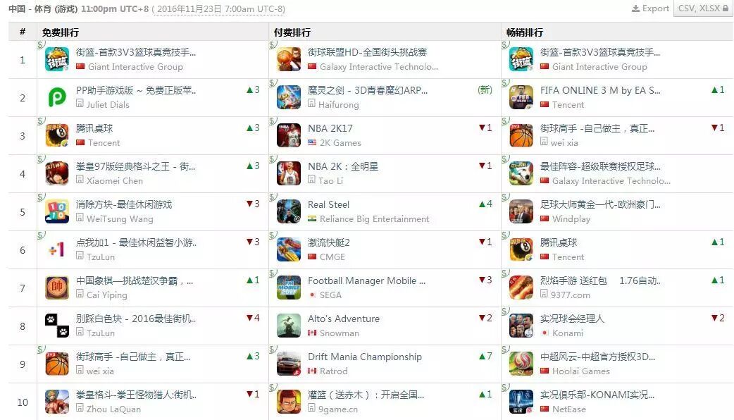 近期国内的手游市场中,体育类产品呈现出了火热的态势:上架不久的《街球联盟》下载量不俗;成功推出《最佳阵容》、《街球联盟》和《球王之路》的星河互动完成亿元B轮融资;打造了《中超风云》的体育手游公司拱顶石科技,也于近期获得了微影资本和红杉资本共6600万人民币的B轮融资;此外,拿到了CBA版权的风际游戏制作的《篮球经理梦之队》,也将在12月份上线。