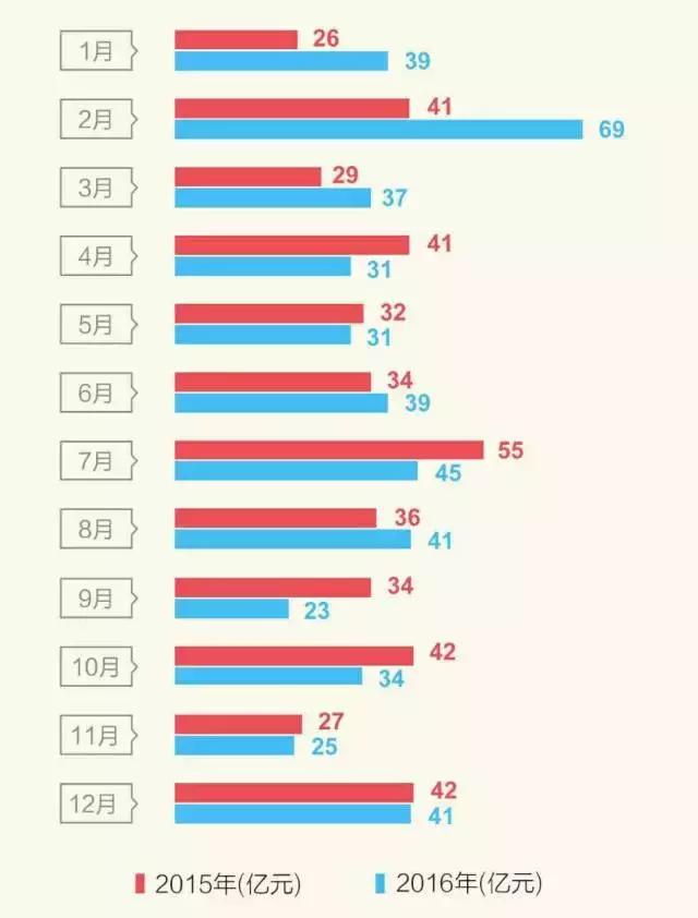 纵观全年,只有春节档的2月异军突起,七天票房突破36亿,占2016年票房的8.02%,与2015年相比,同比增长19亿。春节档上映电影前三名的最终票房都轻松突破10亿,票房第一的《美人鱼》33.8亿的票房纪录至今未有影片企及。