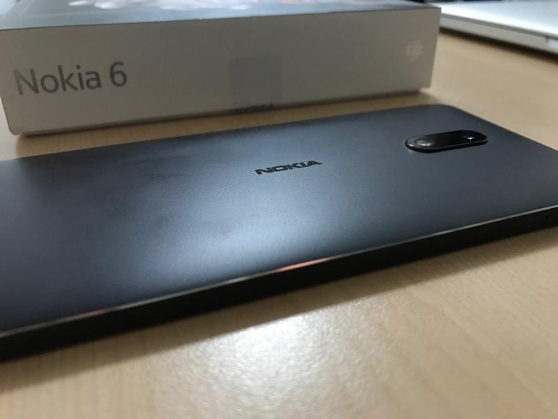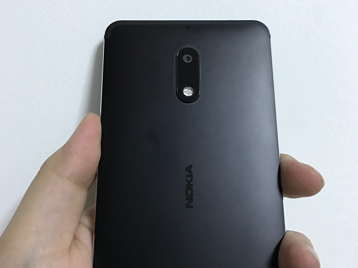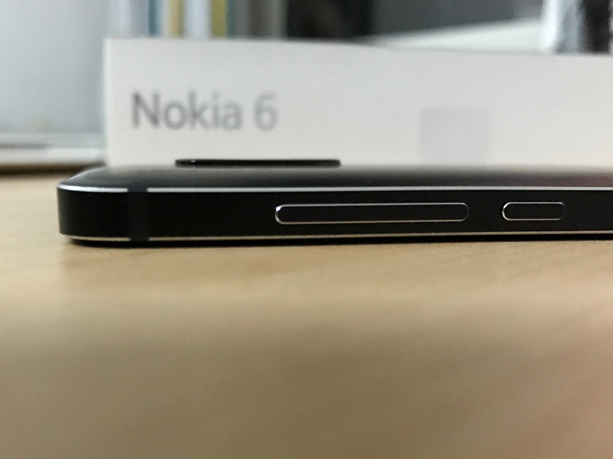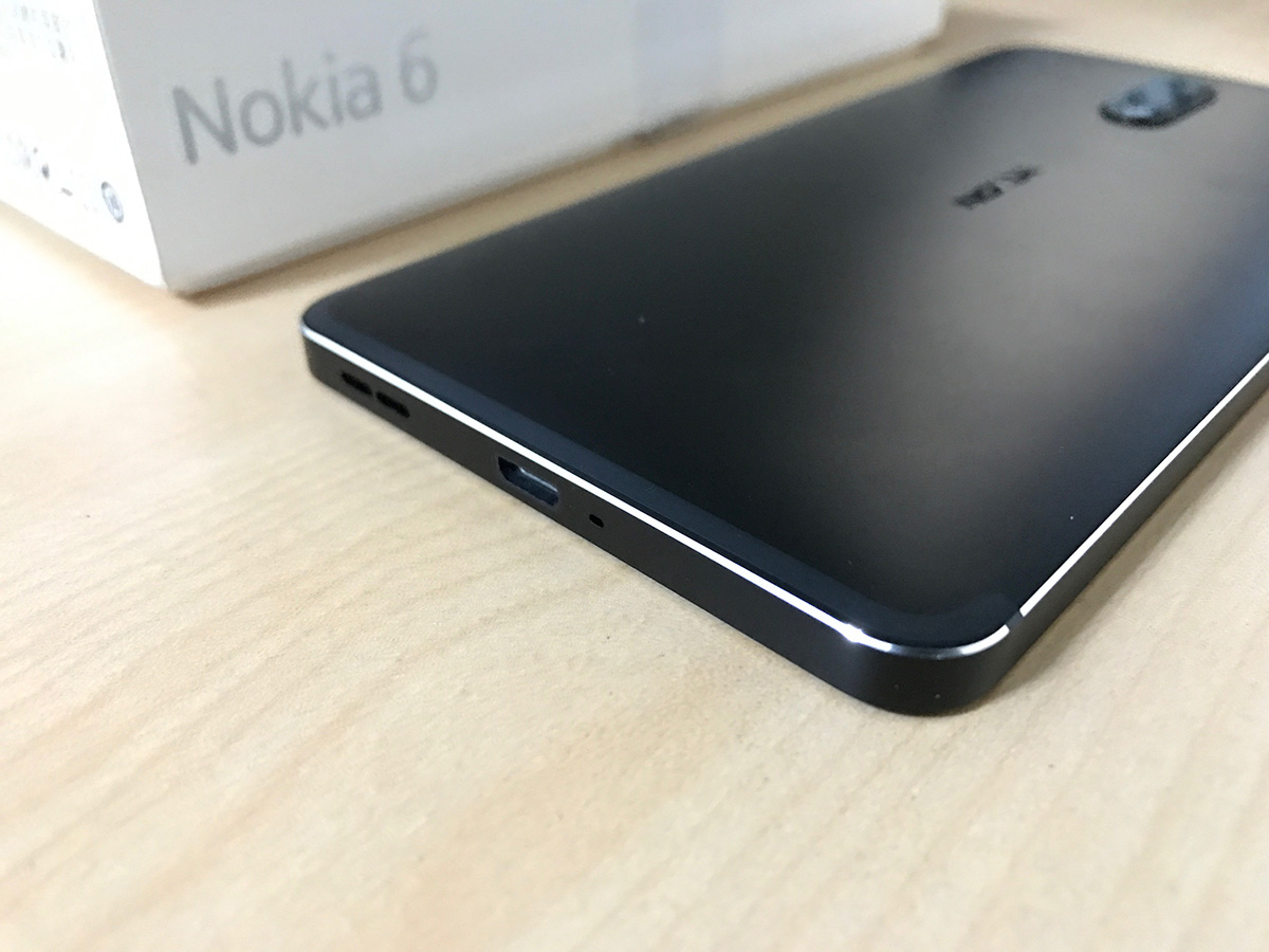 机身为铝合金,表面做了磨砂处理。虽然说是磨砂,但是并不是十分粗糙,对比 iPhone 来说 Nokia 6 的后壳并不是十分顺滑,但这并不是缺点,这样的结果是有一定阻滞感,不易脱手,尤其是手上有汗或水的时候。