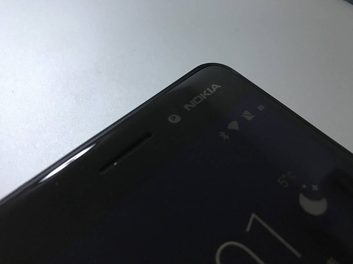 Nokia 6 的正面的 5.5 英寸屏幕采用 2.5D 玻璃覆盖,边框与屏幕间隐藏了一圈塑料环中框,如此的结果是过度手感平滑,据称间隙小于 0.05 毫米。