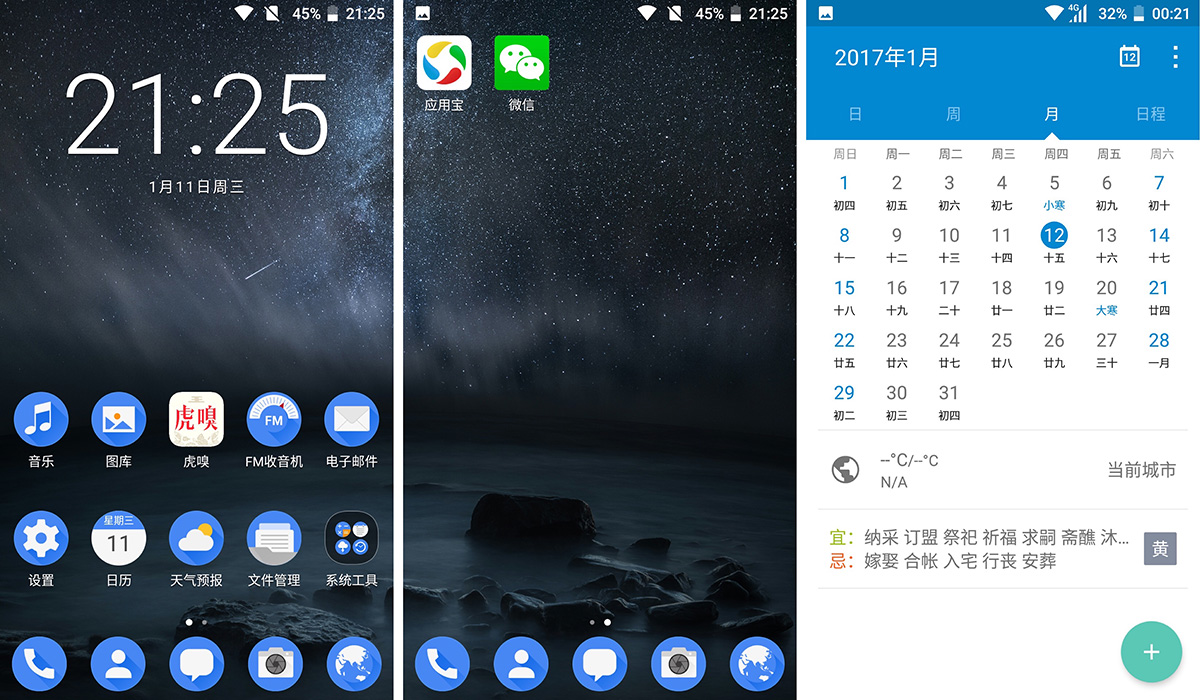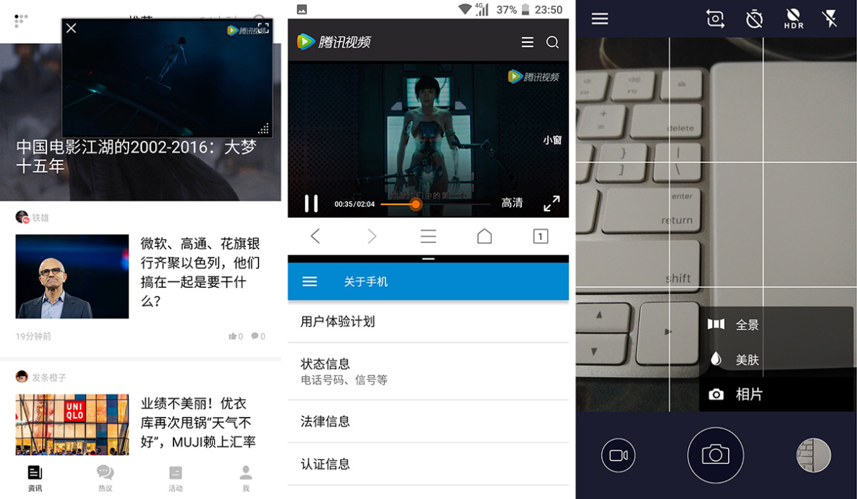 圆形的图标,配色采用蓝色(或许是为了体现自己的蓝色血统),系统整体十分干净,内置第三方程序仅有应用宝和微信,对此没什么挑剔的,毕竟你需要一个应用市场,而在国内后者你肯定会下载的——当然这里涉及的预装合作背后的一系列利益关系大家懂就好了。另外系统浏览器也是基于 QQ 浏览器定制的。
