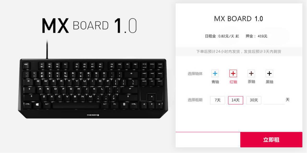 Cherry 还给这款键盘推出了一个“共享键盘”服务,即用户交完押金后,可以选择轴体和使用时间。