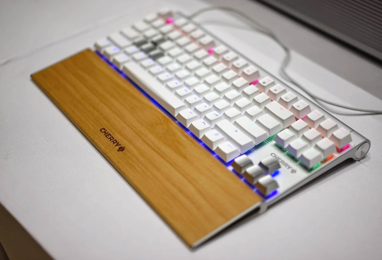 除此之外,Cherry 还推出了新款的 MX8.0 RGB,是去年旗舰产品 MX8.0 的进化,RGB 的意思是键盘下面的五彩灯光,可以按照用户需求和自定义亮跑马灯。