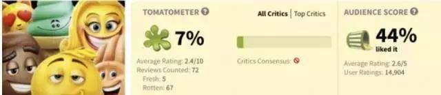 最近就有了一个这样的典型例子。据Hollywood Reporter报道,索尼的《表情奇幻冒险》一片自7月28日在美国开画后,首周末票房在美国本土获得了2450万美元,可同时该片的烂番茄新鲜度却是惊人的超低7%(均分2.4)。