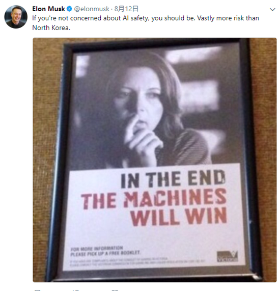 上周五,马斯克在Twitter上发文,再次就人工智能发出新的警告,称这种技术对人类的威胁比朝鲜核武器还要大,人们应该提高对人工智能崛起的警惕,“如果你不担心人工智能的安全性,那么现在你应该担心。它比朝鲜核武器危险得多。”