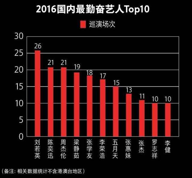通过对2016年举办演唱会场次TOP 10歌手的分析,我们可以发现,这些歌手的出道时间大多集中在1995年左右或者稍晚,但其事业发展的最高点往往出现在2000以后的十年之间,这前后15年正与华语乐坛发展的鼎盛时期重合。