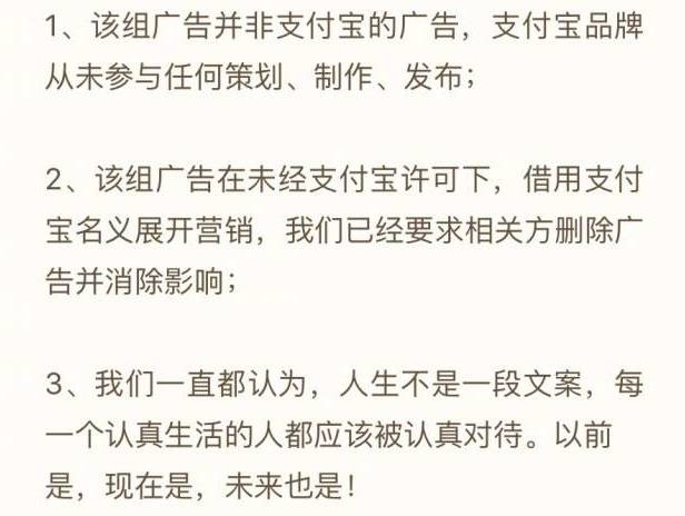 说回今天白天的新闻。今天的争议和对决有点多,先来看支付宝的的文案稿争议。