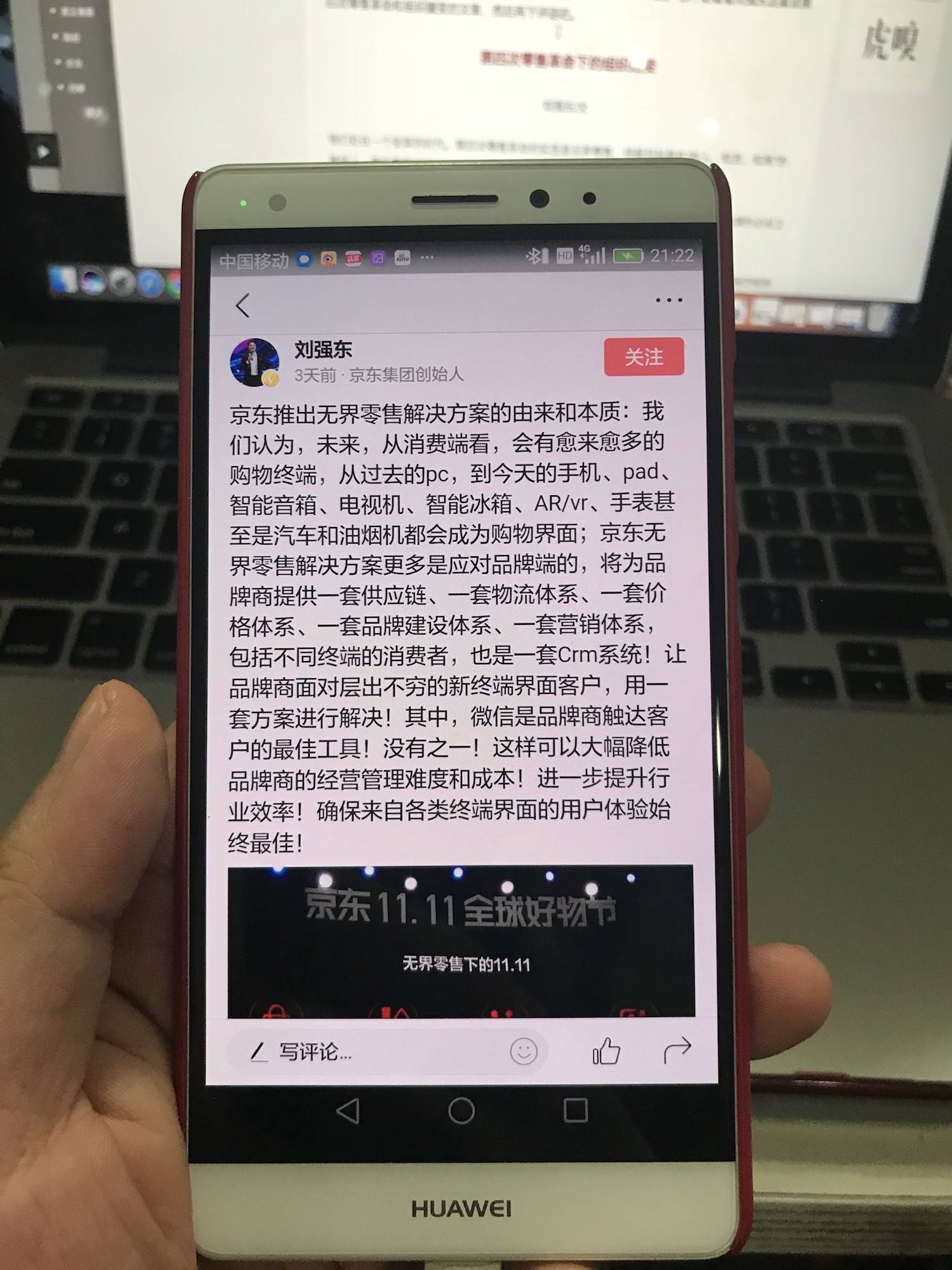 因为众所周知的原因,刘强东几乎战略放弃了阿里巴巴投资的新浪微博,把今日头条玩出了新浪微博的既视感,他在10月17日在今日头条的头条号上发了一段话,对“无界零售”的本质进行了诠释。