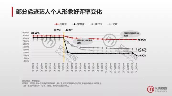 在我们看来,艺人的言行无法左右,劣迹事件确实是一个潜在的隐患,但用数据监测的话,可以通过社交平台上的讨论,判断出早期的风险因素,并能够在发酵范围内有效规避。