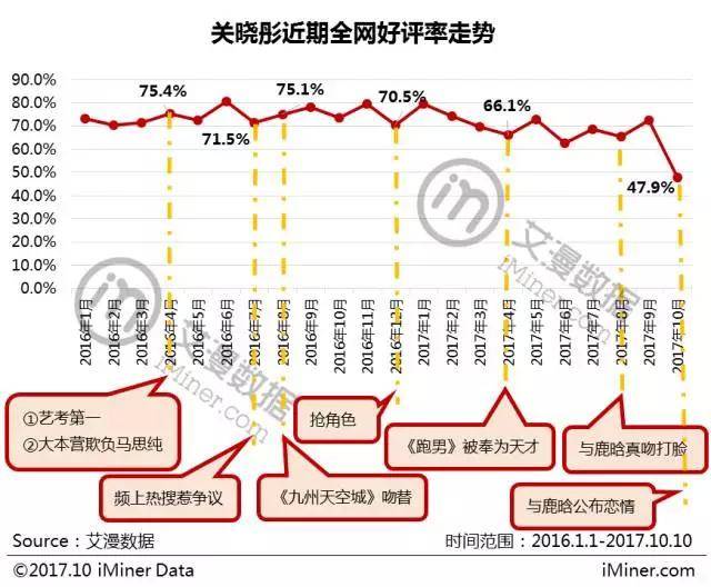 半月前鹿晗关晓彤公布恋情,引发了现象级轰(bao)动(zha),关晓彤好评率走势由9月份的71%跌至47.9%,但抛开黑粉增加与路人不适等因素,关晓彤近两年的风评已出现争议。