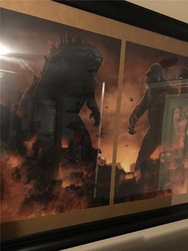 如今有人爆料了一张来自传奇影业工作室的壁画,可以看到图中同框的金刚和哥斯拉几乎一般大小,不知道这巨型猩猩是吃了什么突然导致体型暴涨三倍,不过这样的设定感觉更合适一些,不会让对决的双方一大一小,成了金刚的四两拨千斤,或是哥斯拉的以大欺小。