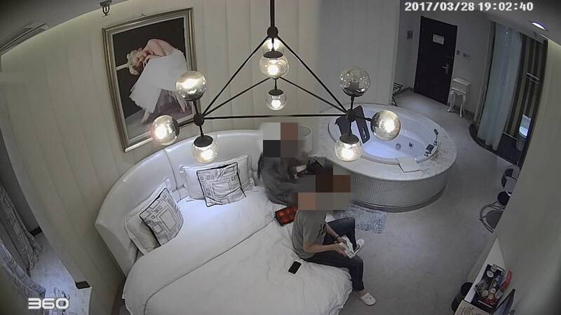 这样的画面不一而足,不知道你注意到一个细节没有,在这些视频截图的左下角均有“360”、“360摄像机”的水印,而这些视频拍摄的场景都是在一些情趣酒店,从角度来看,这些摄像头多数都隐藏在天花板或者墙角等隐蔽的地方。