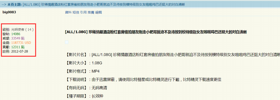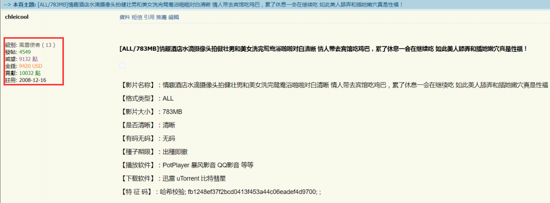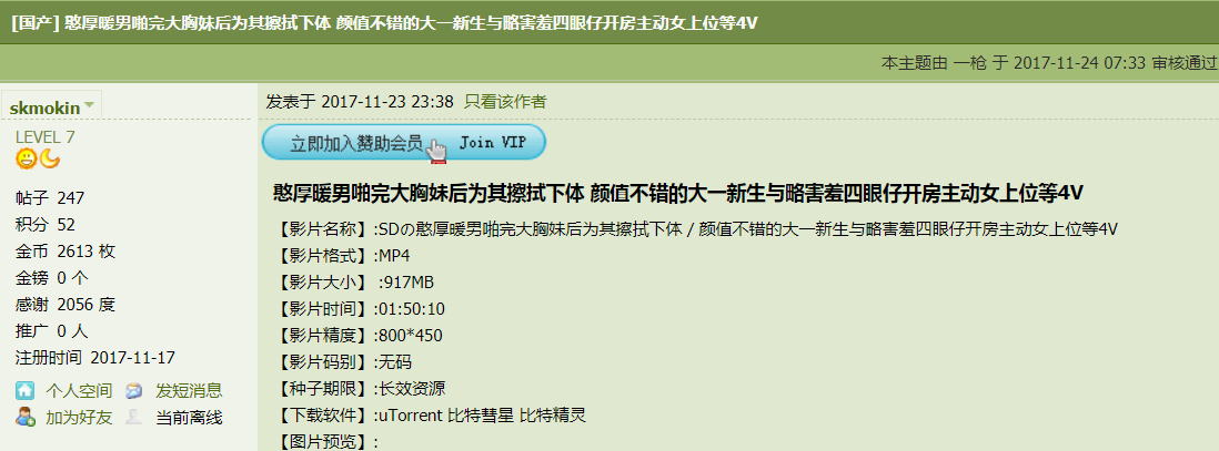 当然也有最近刚注册的,在另一个知名成人网站上,有一位网友是2017年11月17日注册的,等级已经达到了7级,发了247个帖子。