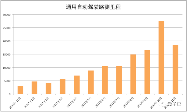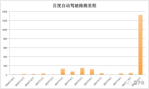 数据显示,百度美研从2017年11月开始,无人车测试里程数大幅上升。如下图所示: