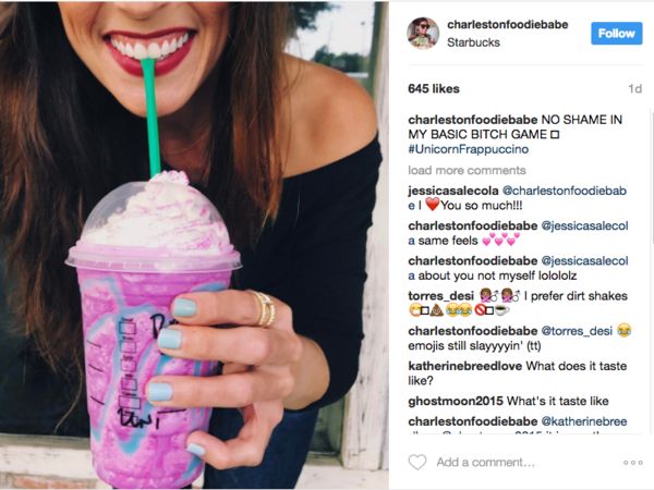 据了解,自2003年推出以来,南瓜拿铁已累计售出 2亿杯,成了网上各种各种“xxx必备款”的代名词,独角兽星冰乐也是社交图片网站Instagram上的热门饮品,顾客上传的无数照片为星巴克免费做了广告。