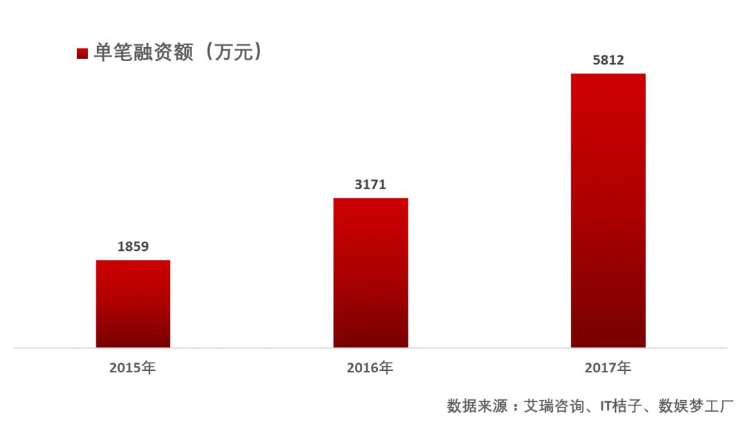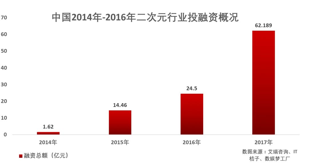融资数量的增长与脱离初创期的企业融资轮次的后推,使得2017年二次元行业获得的融资金额较往年有了巨大的提升。