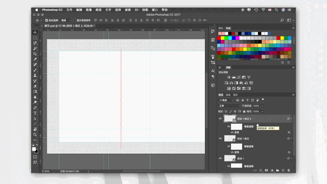 人民币底纹的基础单位是三条纵向交错的波浪线。在 155:77 的白色背景上,批量复制粉色曲线交错横向排列,就能成功制造纸币质感。