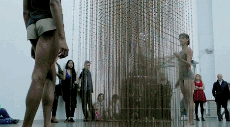 走入倾盆大“雨”中,雨水却自动为你让开一个空间,不会落在身上。 在这样的“大雨”中,有的人闭上眼睛,默默听雨;有的人伴着节奏,翩翩起舞;还有携手的恋人,抱在一起,久久深吻。
