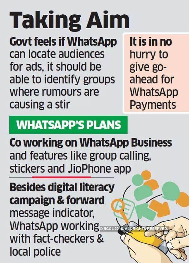 7月3日,印度电子信息技术部因此发布一篇声明,警告WhatsApp说,政府部门已经开始处理传播虚假新闻的问题。7月19日, WhatsApp回应,正在印度启动一项测试,对消息转发进行限制。出于隐私方面的考虑,WhatsApp将印度用户转发消息的上限设定为一次5个聊天,同时还在印度删除了媒体消息旁边的转发按钮。