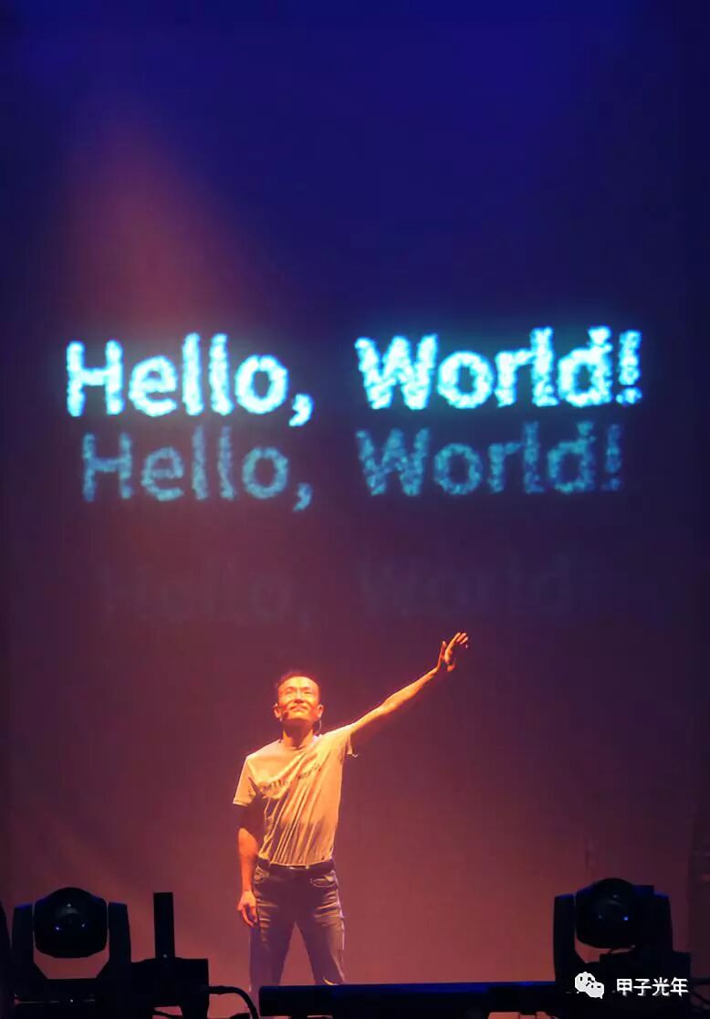 2016年的蚂蚁金服年会上,舞台特效还原了《黑客帝国》里的代码漫天坠落的经典场景,蚂蚁金服CTO鲁肃在代码里挥舞着手臂上台,最后千万行代码汇成一句话,这也是1969年人类的第一封电子邮件写给世界的话: