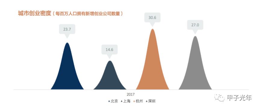 2017年,杭州新成立的创业公司数量已比肩北京、上海、深圳,且人均创业密度已排名全国第一。