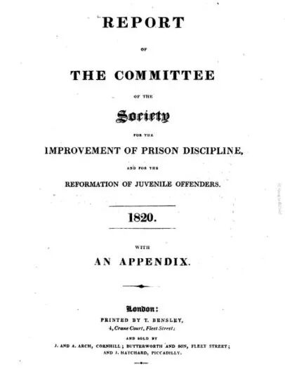 12. Report of the Committee of the Society for the Improvement of PrisonDiscipline, and for the Reformation of Juvenile Offenders. Soc. 1820. Print.