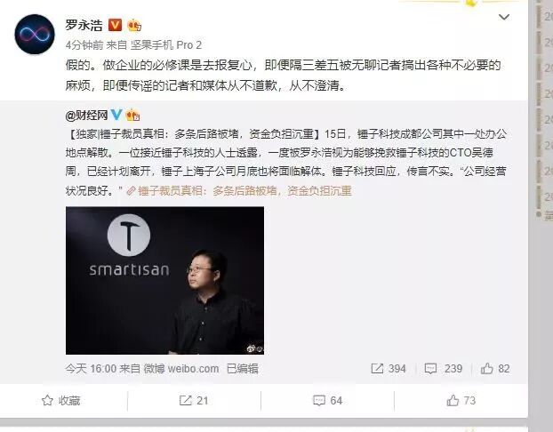 但依然有很多人猜测锤子命悬一线。《财经》杂志甚至给锤子科技判了“死刑”:锤子科技已经回天乏力,它不是第一家,也不会是最后一家。