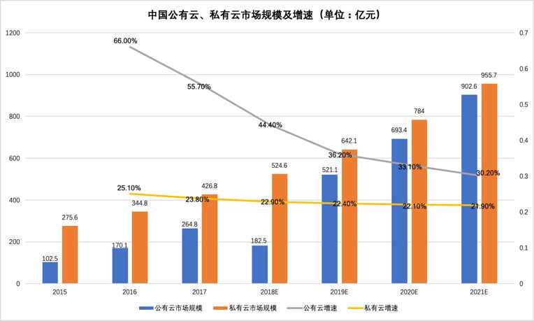 当前中国云计算市场整体规模较小,与全球市场的差距仍在3~5年之间。但根据信通院去年8月发布的《云计算发展白皮书(2018年)》,我国的公有云市场近两年来保持50%以上的年增长率,预计未来几年仍将保持高速增长,行业前景可期。当前云计算的应用正从互联网行业向政府、金融、工业、交通、物流、医疗健康等传统同行业渗透,各大云计算厂商纷纷进军。