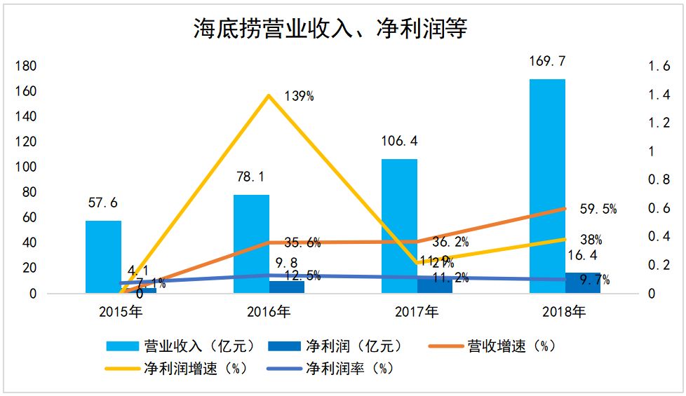 图5:海底捞的营收及净利润,资料来源:海底捞招股说明书及年报