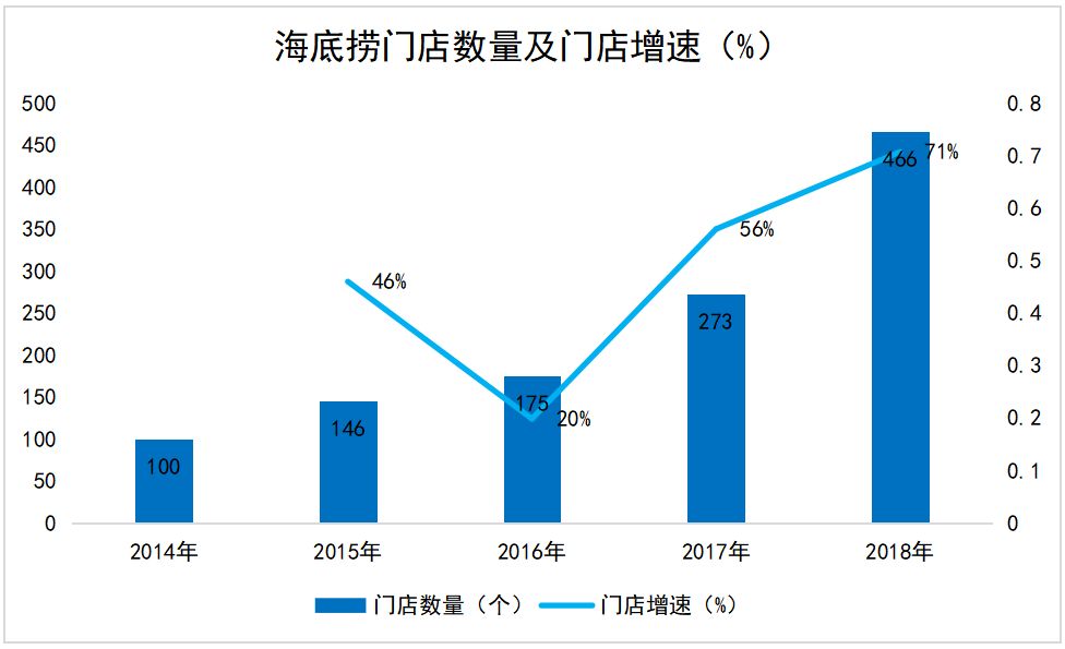 从上面的数据可以看到,海底捞从2016年进入了快速扩张的发展之路:门店数量以每年超过50%的速度增长,海底捞经过前面20年的发展夯实了基础: