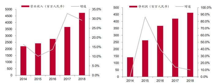 2014年上市当年,公司的门店数量为452家,营业收入为22亿元,其中北京市场贡献约为63%;毛利率为60%,净利润为1.4亿元。
