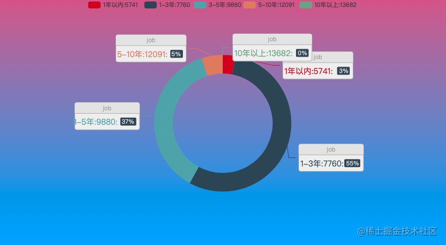 可以看到,下面的图片还是比较直观的 1-3年的应聘者还是最多的,占比达到了50%+,这个经验段,确实是职场的主力军了!