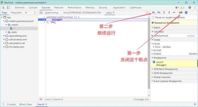 这是一个debug断点,会阻拦我们后面的操作,但是并没有什么关系,很简单就能把它关闭