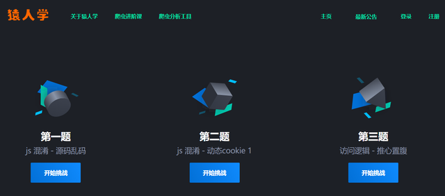 很早之前在吾爱破解论坛上看见了【猿人学】Web端爬虫攻防大赛,当时进入他们官网的时候,比赛已经结束了。看着那些题目还挺有意思的,但由于各种原因一直没有机会去做那些题目。最近比较闲,就去把猿人学官网打开看了一下,尝试着完成了第一道题目---JS混淆[源码乱码]